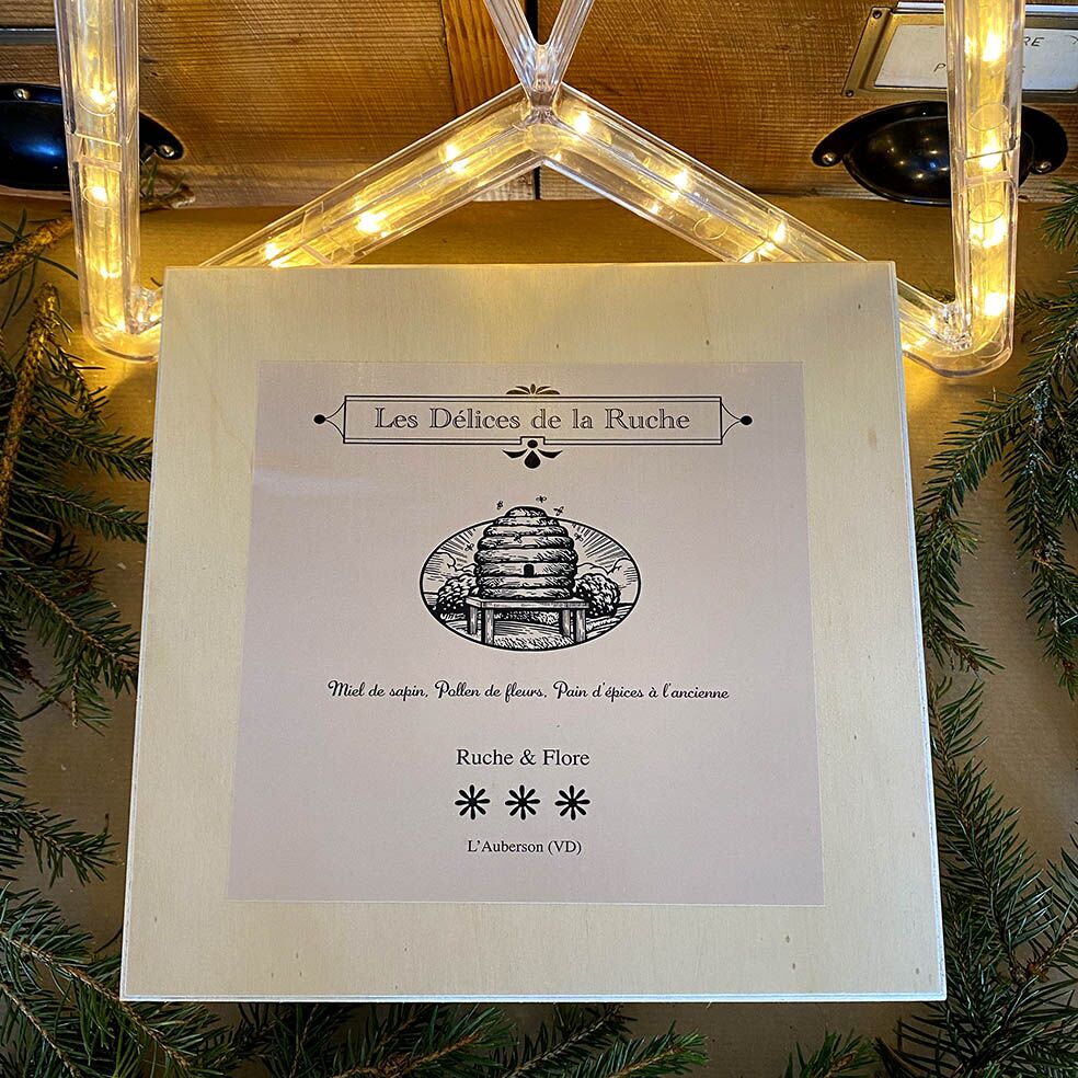 L’ensemble est présenté dans une boîte en bois de hêtre, gravée du logo Ruche & Flore. Réutilisable et élégante, cette boîte illustre notre souci du détail et notre respect des matériaux durables. C’est un emballage à la fois pratique, esthétique et respectueux de l’environnement.