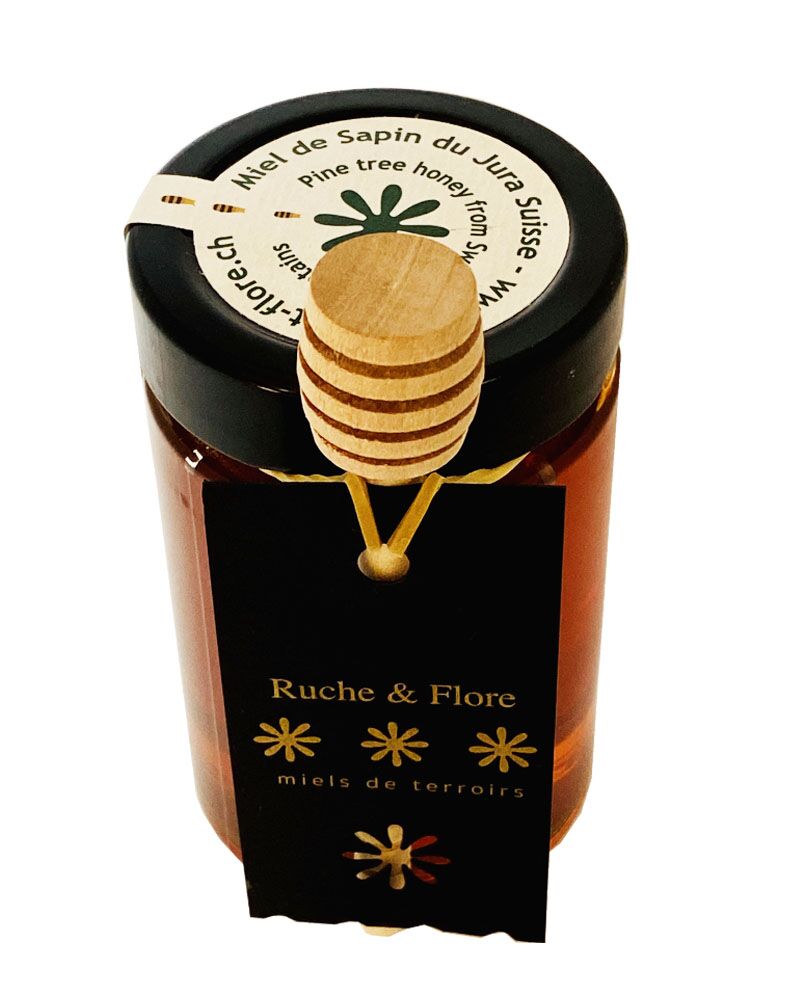 Issu du miellat de sapin des forêts suisses, ce miel rare est reconnu pour son aspect sombre, presque ambré, et ses arômes puissants aux notes résineuses. Il se marie parfaitement avec les fromages à pâte dure ou en nappage sur une viande rôtie.