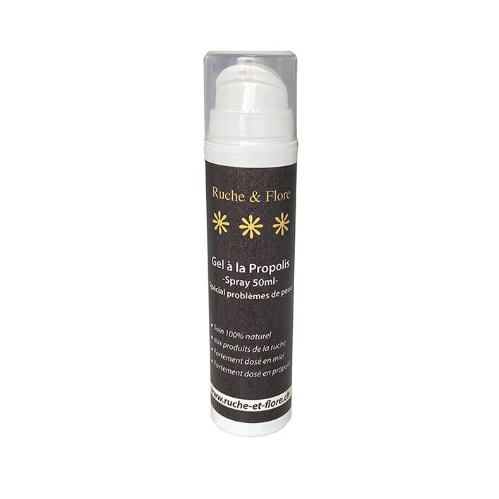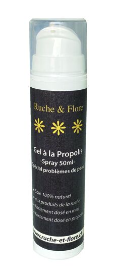Gel à la Propolis (spray-pompe 50ml) : un soin apaisant pour toutes les manifestations cutanées. Idéal pour purifier, calmer et favoriser la cicatrisation des petites blessures.
