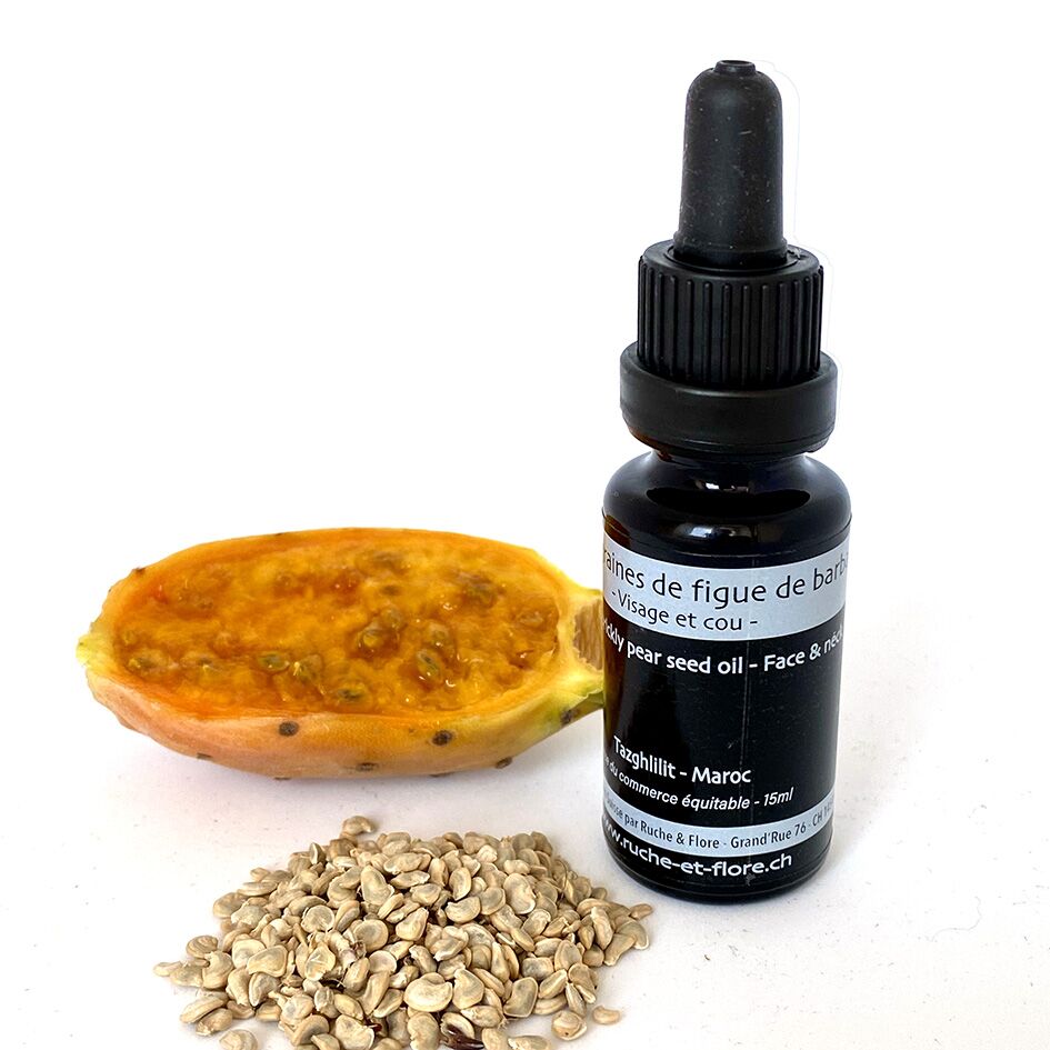 L’huile de pépins de figues de barbarie est un véritable trésor de beauté. Réputée pour ses propriétés anti-âge, cette huile rare et précieuse est riche en vitamine E et en acides gras essentiels. Elle pénètre rapidement dans la peau, aidant à réduire l’apparence des rides, à raffermir et à nourrir en profondeur. Appliquez quelques gouttes chaque soir sur le visage et le cou pour une peau visiblement plus jeune, éclatante et revitalisée.
