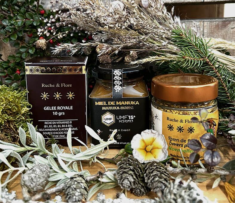 Offrez ou offrez-vous le Coffret Protection Intense signé Ruche & Flore, une sélection raffinée de trois trésors de la ruche reconnus pour leur qualité exceptionnelle : gelée royale fraîche, miel de Manuka d’excellence et pollen bio suisse. Pensé pour celles et ceux qui souhaitent soutenir leur énergie au quotidien et profiter pleinement des bienfaits naturels des produits apicoles.
