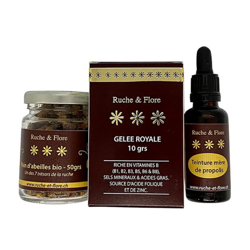 Le Pack Immunité réunit trois trésors de la ruche dans une sélection pensée pour accompagner votre quotidien avec des produits naturels, authentiques et complémentaires. Il comprend une gelée royale, un pain d’abeilles et une teinture de propolis, trois références emblématiques appréciées dans l’univers apicole.